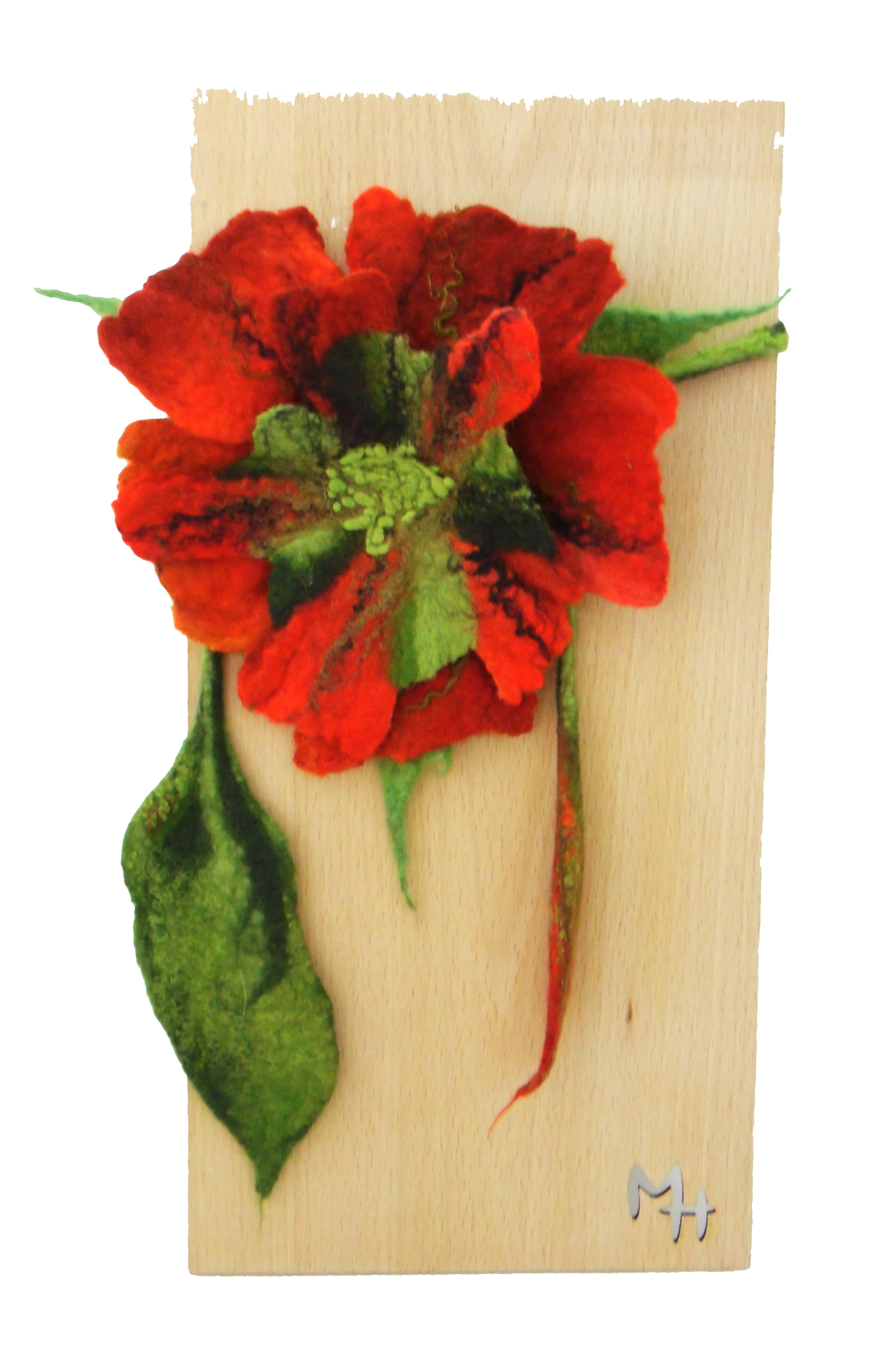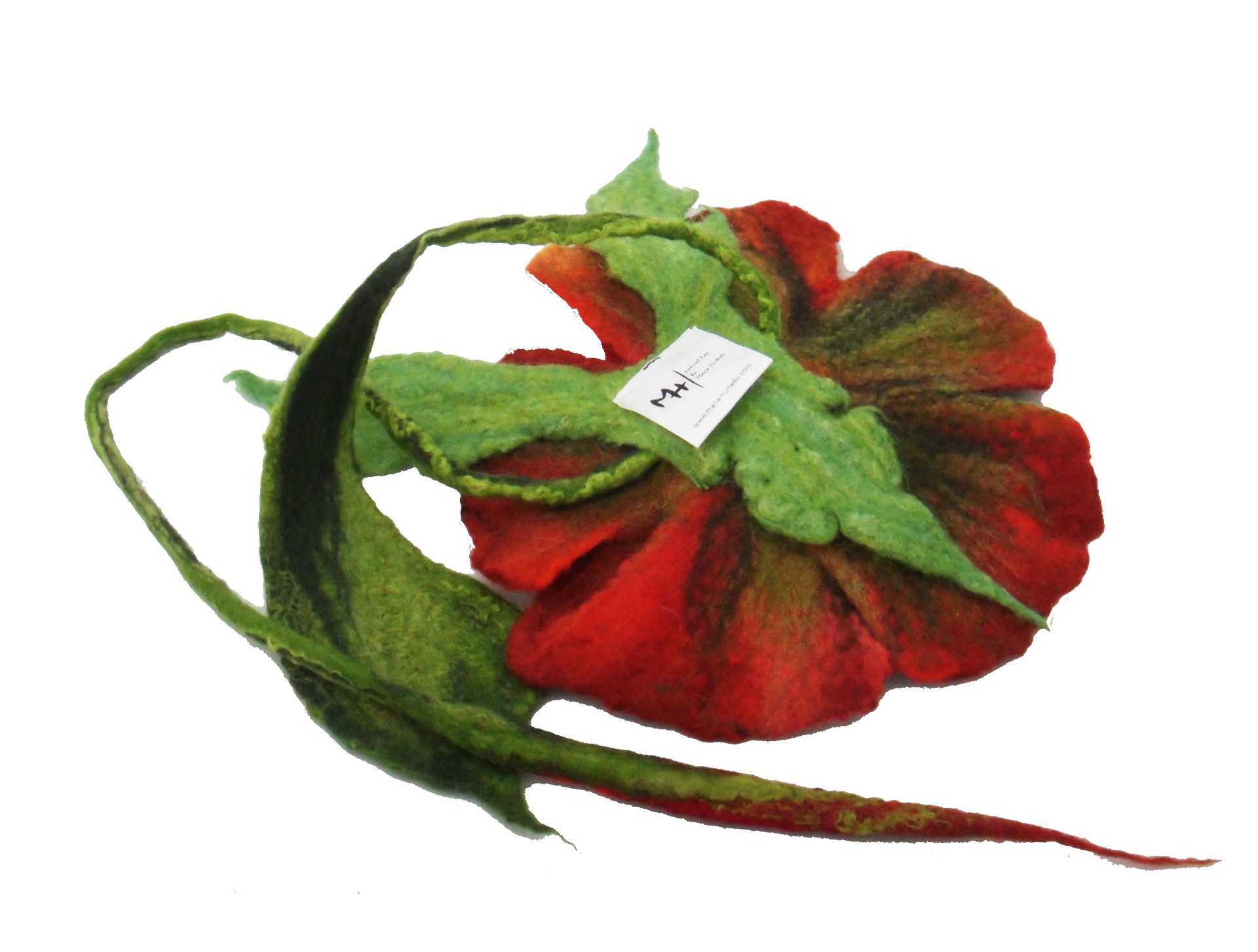 La flor tiene un diámetro de 20 cm. y el cordón mide 80 cm.