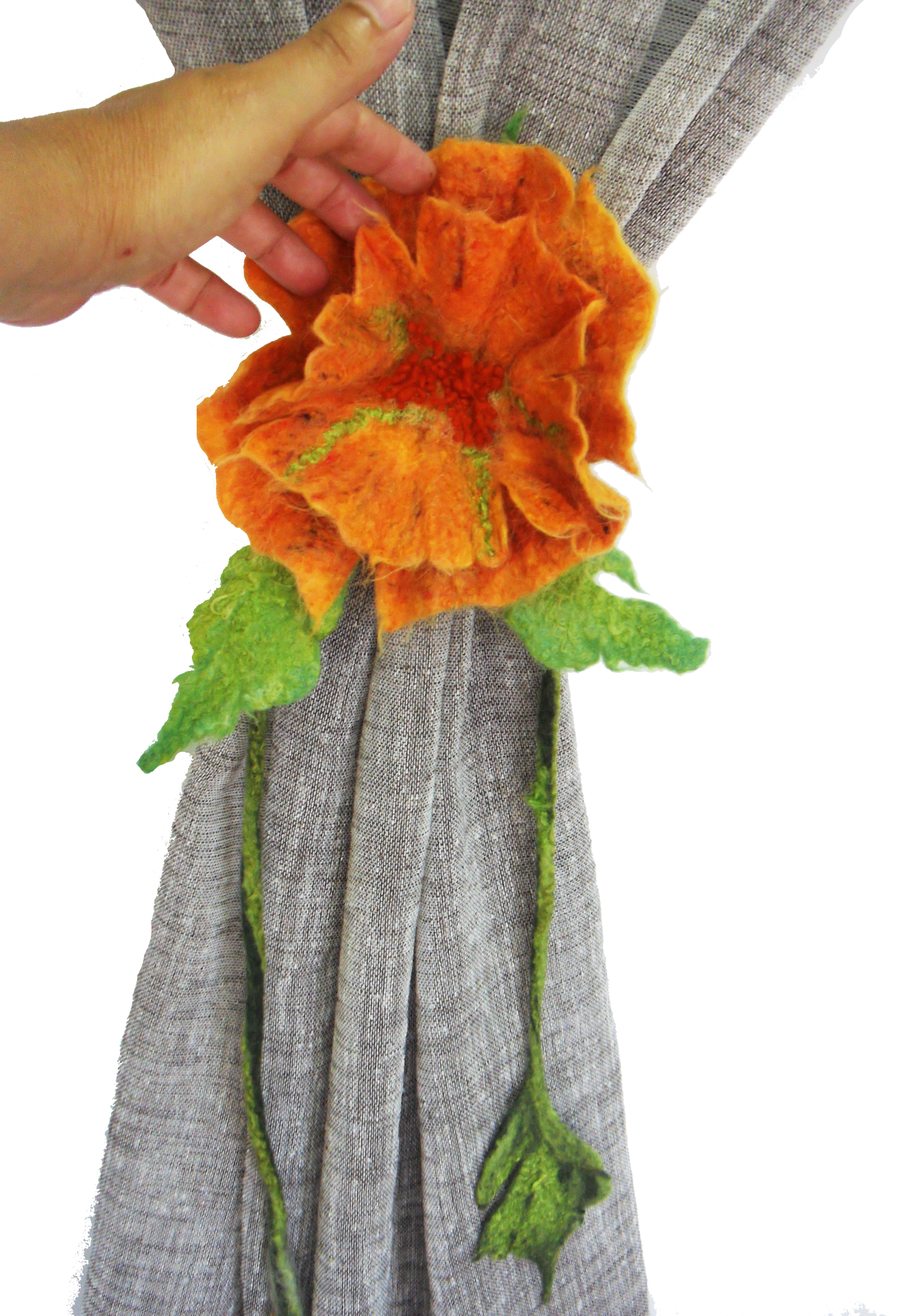 Alzapaños con forma de flor con hojas.