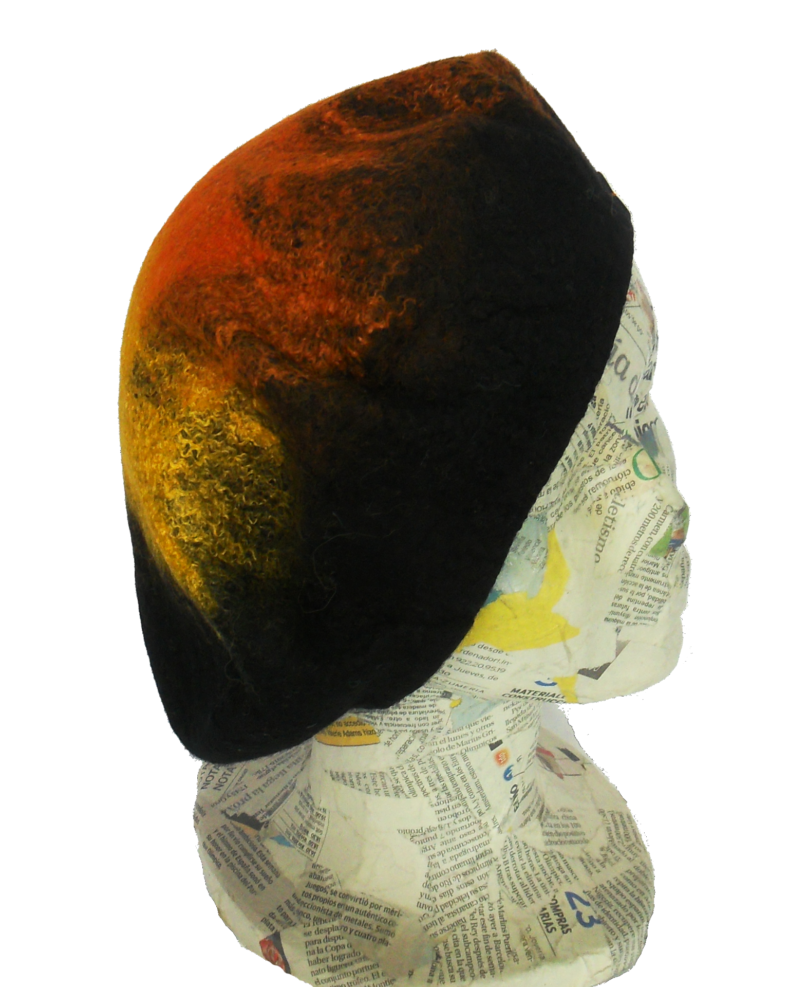 BOINA REALIZADA DE MANERA TOTALMENTE ARTESANAL CON LANA MERINO DE 21 MICRAS Y FIBRAS DE SEDA,VISCOSA Y BAMBÚ.