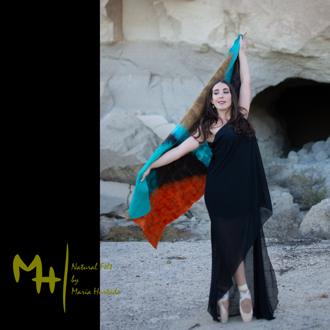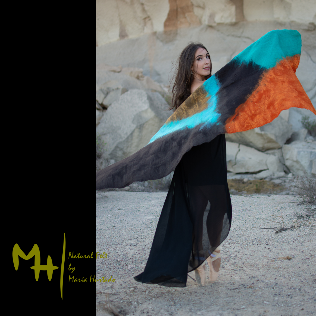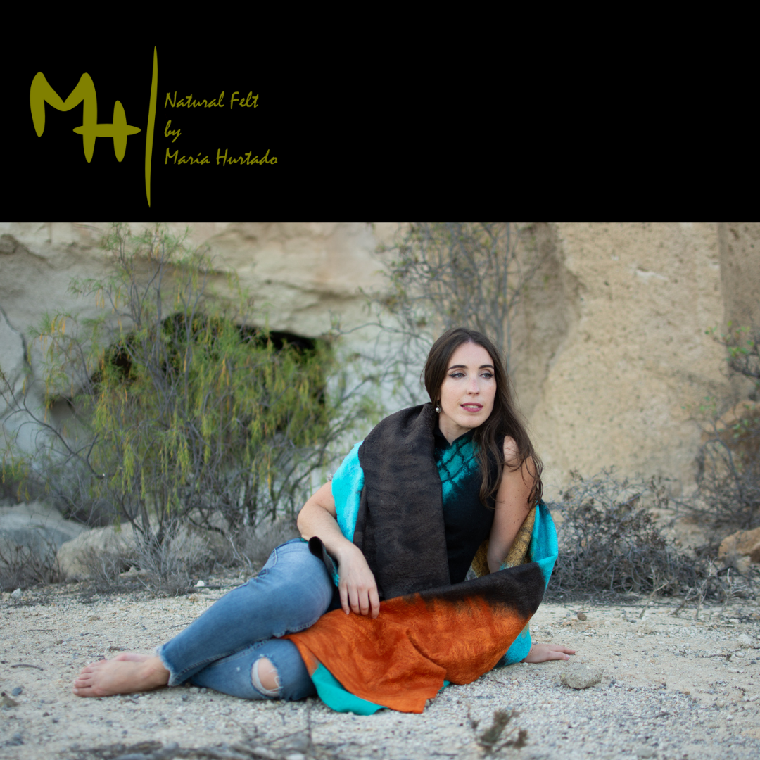 DOUBLE LAYER COBWEBFELT SHAWL. HANDMADE MADE WITH MERINO WOOL AND SILK