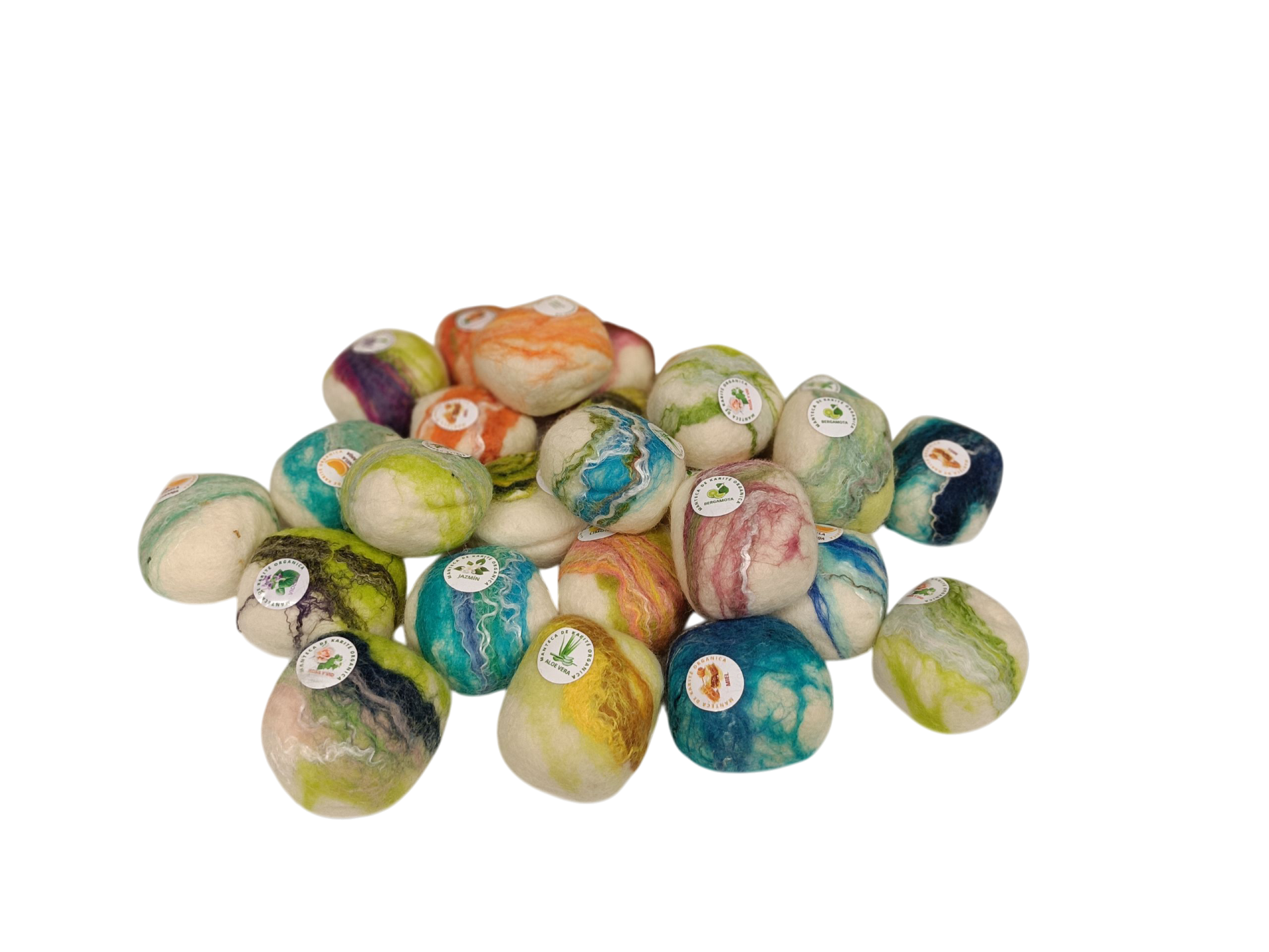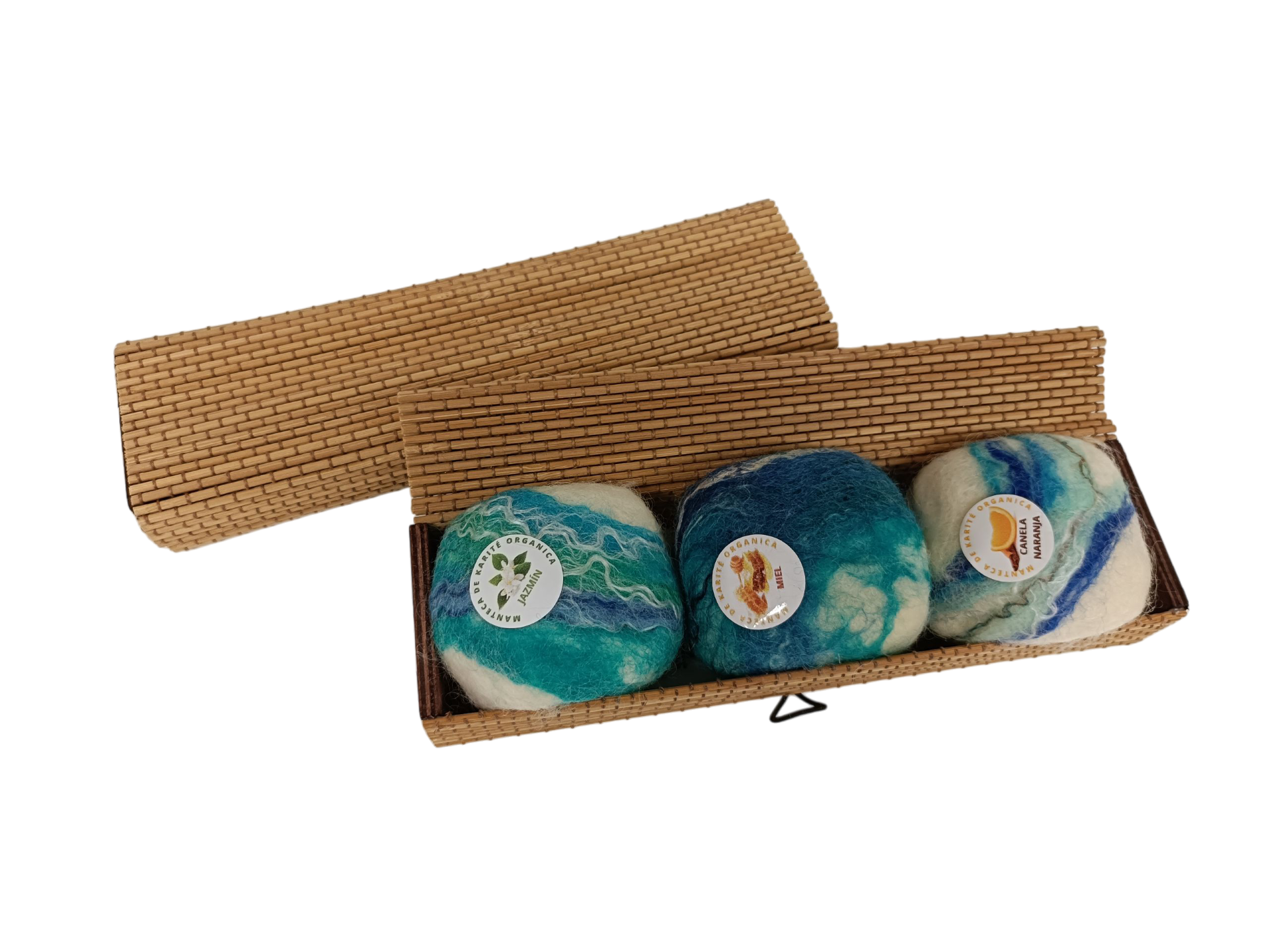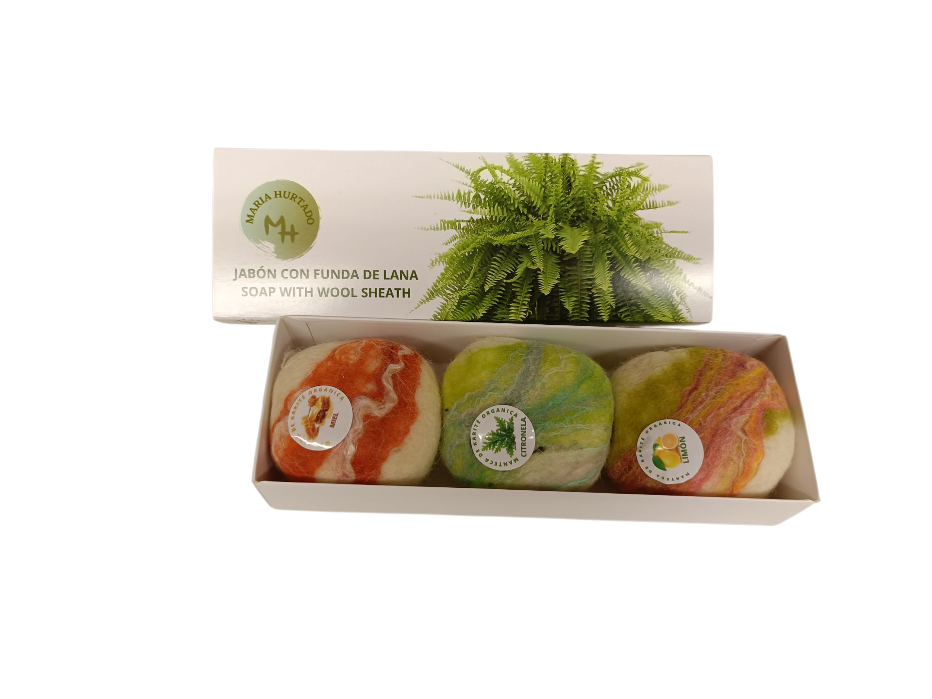 EL JABÓN DE FIELTRO ES UN JABÓN DE MARSELLA (OLIVA Y COCO) ENRIQUECIDO CON ACEITE DE KARITÉ ORGÁNICO, RODEADO DE LANA DE OVEJA QUE TE PERMITE LAVARTE SIN ESPONJA Y QUE ADEMÁS TE APORTA UN LIGERO EFECTO EXFOLIANTE.